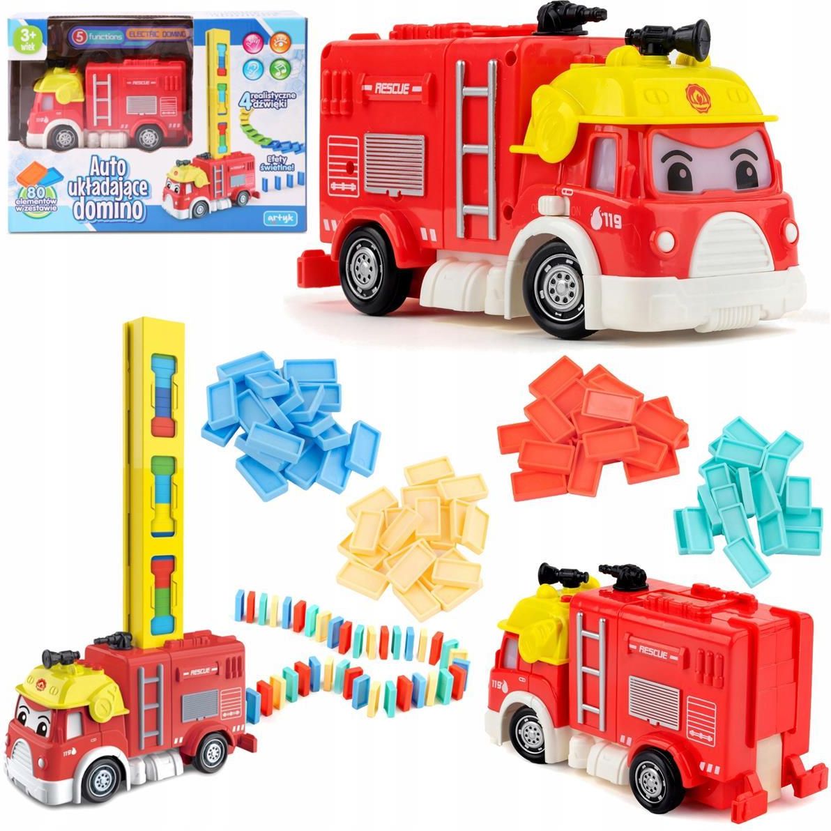 Artyk Auto Układające Domino E-Edu Zabawa z pojazdami to nieodłączny element dzieciństwa, który wspiera rozwój motoryczny, kreatywność oraz wyobraźnię najmłodszych. Wśród różnorodnych zabawek edukacyjnych, zestaw Artyk Auto Układające Domino E-Edu wyróżnia się jako produkt, który łączy radość z zabawą z walorami edukacyjnymi. W skład zestawu wchodzi wóz strażacki oraz 80 klocków domino, co stwarza nieograniczone możliwości do odkrywania i nauki przez zabawę. Typ i materiał pojazdu Zestaw edukacyjny zawiera wóz strażacki o długości 19 cm, przyciągający uwagę kolorowym i atrakcyjnym designem. Wykonany z trwałego plastiku, pojazd gwarantuje bezpieczeństwo podczas zabawy, co jest szczególnie istotne w przypadku dzieci. Dodatkowo, zestaw zawiera aż 80 klocków domino w różnych kolorach, co rozwija umiejętności manualne i uczy dzieci zasad logicznego myślenia. Zastosowanie i funkcje Zestaw Artyk to wszechstronna zabawka, która doskonale sprawdzi się zarówno w domu, jak i na świeżym powietrzu. Dzieci mogą bawić się, tworząc tory z klocków domino i integrując je z wozem strażackim. Zestaw oferuje szereg interaktywnych funkcji, które wzbogacają zabawę i angażują maluchy: dźwięki związane z pracą silnika, dwa sygnały ostrzegawcze, kolorowe podświetlenie kabiny, funkcja zmiany kierunku jazdy w zależności od ruchu głośnika. Te atrakcyjne funkcje sprawiają, że każda zabawa staje się pełna emocji i zaskoczeń, co dodatkowo pobudza wyobraźnię dzieci. Funkcje i zalety Zestaw edukacyjny Artyk Auto Układające Domino E-Edu oferuje wiele korzyści dla rozwijających się dzieci. Oto kilka kluczowych zalet: Rozwój umiejętności manualnych: dzięki klockom domino, dzieci uczą się precyzyjnych ruchów i koordynacji. Stymulacja wyobraźni: tworzenie torów z klocków oraz zabawa w różnorodne scenariusze rozwija kreatywność. Interaktywność: dźwięki oraz podświetlenie kabiny wozu strażackiego zwiększają atrakcyjność zabawy. Edukacja przez zabawę: zestaw wprowadza dzieci w świat podstawowych zasad logiki i przyczynowości. Bezpieczeństwo: wykonanie z wysokiej jakości materiałów zapewnia trwałość i bezpieczeństwo użytkowania. Wymiary i waga Zestaw został zaprojektowany z myślą o wygodzie użytkowania. Jego opakowanie ma wymiary 33 x 23,5 x 9 cm, co czyni go łatwym do przechowywania oraz transportu. Wóz strażacki o długości 19 cm idealnie mieści się w małych rączkach przedszkolaków, co zapewnia komfort podczas zabawy. Rekomendowany wiek dziecka Produkt dedykowany jest dzieciom powyżej 3. roku życia. Dzięki swojej konstrukcji oraz interaktywnym funkcjom, zestaw stanowi doskonały wybór dla przedszkolaków, które zaczynają swoją przygodę z zabawkami edukacyjnymi. Wspiera rozwój umiejętności społecznych i motorycznych poprzez zabawę w grupie lub samodzielnie, co jest niezwykle ważne w tym wieku. Zawartość zestawu W zestawie Artyk Auto Układające Domino E-Edu znajduje się wszystko, co potrzebne do wspaniałej zabawy. Oto, co można znaleźć w opakowaniu: wóz strażacki o długości 19 cm, rozsuwana drabina, idealna do klocków, 80 kolorowych klocków domino, które można ustawiać na różne sposoby, interaktywne funkcje dźwiękowe i świetlne, które umilają zabawę. Dzięki temu zestawowi, dzieci będą miały nie tylko pojazd do zabawy, ale także klocki, które rozwijają ich kreatywność i zdolności logiczne.