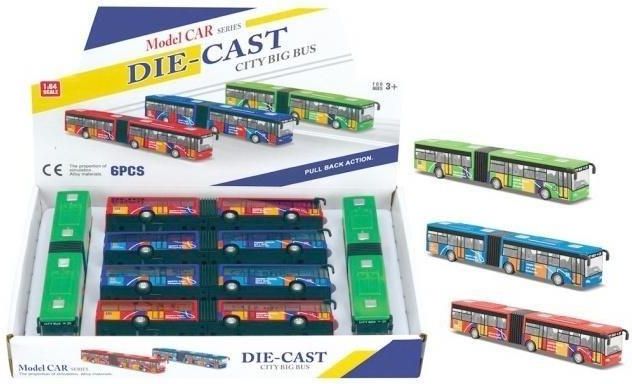 Odkryj fantastyczny zestaw 6 metalowych autobusów z napędem typu pull-back, które z pewnością zachwycą każdego małego fana pojazdów miejskich! Te precyzyjnie wykonane modele Die-Cast City Big Bus są wierną repliką prawdziwych autobusów, oferując dzieciom nie tylko wspaniałą zabawę, ale także rozwijając ich wyobraźnię i zdolności manualne. Każdy autobus wyróżnia się żywą kolorystyką i dbałością o detale, a funkcja pull-back pozwala na dynamiczne wyścigi i realistyczne odtwarzanie scenek z życia miasta. Zestaw doskonale sprawdzi się jako prezent, inspirując do kreatywnego spędzania czasu. Cena podana jest za jedną sztukę. MIX - wysyłka losowa