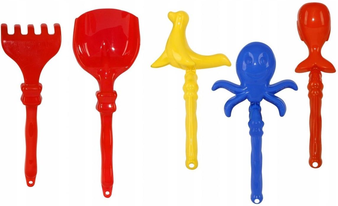 Zestaw zabawek dla dzieci do zabawy w piasku Większość dzieci uwielbia spędzać czas na zabawie w piasku. Dzięki naszemu zestawowi akcesoriów, zabawa w piaskownicy będzie jeszcze bardziej udana! Przedstawiamy atrakcyjny zestaw zabawek dla dzieci z grabkami, łopatką oraz oryginalnymi foremkami. Produkt charakteryzuje się wysokiej jakości materiałami, które są trwałe i odporne na warunki atmosferyczne oraz całkowicie bezpieczne dla dziecka. Zestaw składa się z pięciu elementów – grabek, łopatki oraz trzech foremek w kształcie foki, ośmiornicy oraz wieloryba. Wiele godzin zabawy z zestawem do piasku dla dzieci Dzięki dużej ilości elementów, z tym zestawem żadne dziecko nie będzie się nudzić! Grabki oraz łopatka przydadzą się podczas budowania wymyślnych konstrukcji, a foremki w kształcie morskich zwierząt pozwolą stworzyć własne piaskowe zoo. A to tylko niewielka część pomysłów na wykorzystanie zestawu zabawek do piasku! Produkt przeznaczony jest dla dzieci które ukończyły pierwszy rok życia. Kolorystyka poszczególnych produktów oraz ich elementów może ulec zmianie. Ostrzeżenia! Zabawka odpowiednia dla dzieci w wieku powyżej 1 roku życia. Opakowanie nie jest zabawką - nie udostępniać dzieciom do zabawy.