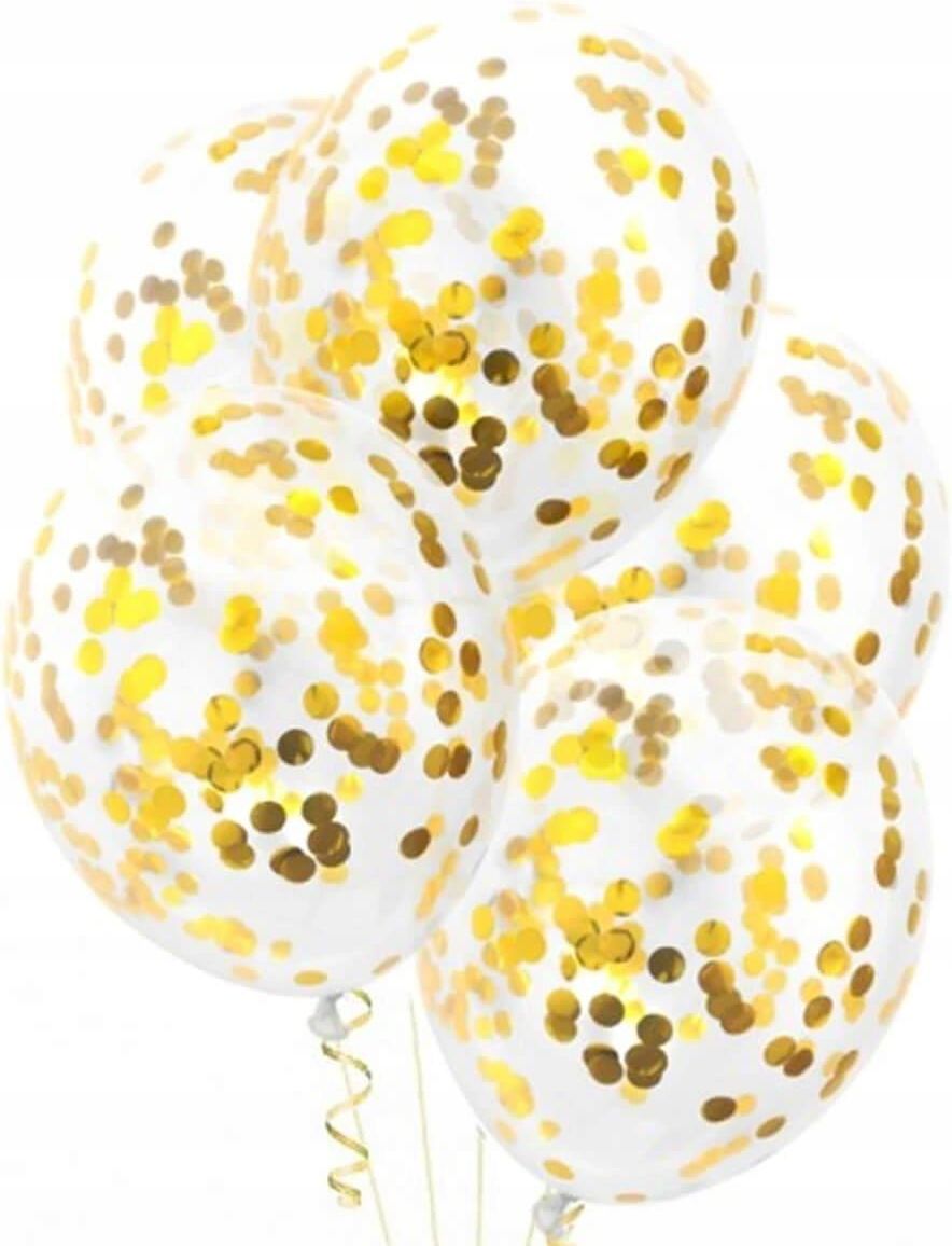 Balony Przezroczyste Ze Złotym Konfetti 30Cm 5Szt Kraków