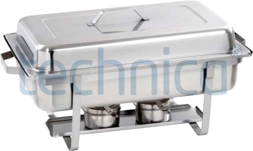 Podgrzewacz do potraw GN 1/1 ze stali chromowo-niklowej. Bardzo głęboki, większa pojemność możliwa dzięki wkładowi o gł. 10cm. Podgrzewacze można ustawić piętrowo. Urządzenie posiada uchwyt podtrzymujący pokrywę. Wkład GN 1/1 o gł. 10cm. W zestawie 2 pojemniki na pastę. Dane techniczne Wymiary (dł; szer; wys): 60.5x35x30.5 cm Pojemność: 14 l