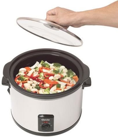 Podgrzewacz do potraw 5,5 l - B-A100155 Garnek elektryczny marki Bartscher umożliwi podgrzewanie niewielkich ilości rozmaitych potraw. Sprawdzi się zarówno w warunkach domowych, ale również jako wyposażenie stołówek pracowniczych, pensjonatów, niewielkich hoteli czy gospodarstw agroturystycznych. …