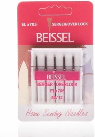 Igła półpłaska BEISSEL do obrzucania. Grubość igły 5x90. Opakowanie 5 sztuk. Zastosowanie do coverlocków System igły ELX705