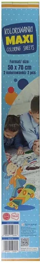 Wielkoformatowa kolorowanka wykonana z grubego, białego papieru. Możliwość pracy kilku osób jednocześnie. Profesjonalna grafika, wyraźny druk w kolorze czarnym. Rolowany bez zagnieceń. W tekturowej tubie chroniącej przed zniszczeniem. Odpowiedni do kolorowania kredkami, flamastrami, markerami i …