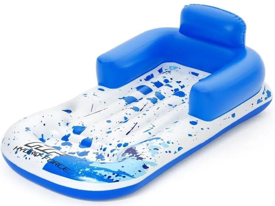 Materac, fotel Hydro-Force Blue Lounge BESTWAY Klasyczny materac na plażę to już przeszłość, prezentowany komfortowy fotel do pływania to produkt renomowanej marki Bestway, dzięki swojemu odmiennemu wyglądowi może posłużyć również jako fotel na plażę. Materac został wykonany z wytrzymałego tworzywa PVC, które jest odporne na drobne uszkodzenia i odbarwianie się kolorów. Wykonanie i biało-niebieska kolorystyka na pewno każdemu przypadnie do gustu. Dodatkowo o Twoją wygodę zadbają dmuchane podłokietniki i oparcie. Producent zadbał o Twój komfort i wygodę podczas odpoczynku, dzięki uchwytowi na napoje nie musisz się już niczym przejmować. Wystarczy usiąść i się zrelaksować. Główne cechy Zawory bezpieczeństwa, Dwukomorowa budowa, Duże oparcie, Dmuchane podłokietniki, Uchwyt na napój, Materiał PVC. Zawartość Materac, Zestaw naprawczy, Kolorowe opakowanie. Wymiary Materac ok. 161 x 84 cm, Maksymalne obciążenie ok. 90 kg, Gramatura PVC ok. 0,22 mm, Waga ok. 1,21 kg. Wymiary opakowania: 25cmx8cmx25cm