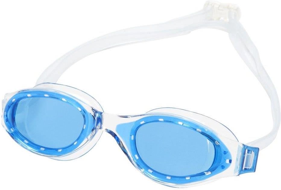 Niebieskie okularki do pływania, nurkowania dla dzieci od firmy Bestway, sprawdzą się podczas pływania w basenie, morzu, jeziorze. Miękka i wygodnie przylegająca oprawa doskonale ochroni oczy przed dostaniem się wody. Aby maksymalnie dostosować okulary do potrzeb użytkownika, można wyregulować silikonowy pasek. Kolorowe soczewki poliwęglanowe zawierają filtr co dodatkowo chroni oczy przed promieniami ultrafioletowymi oraz są wyposażone w powłokę przeciwmgielną, która zapewnia krystalicznie czysty obraz podwodny. Okularki przeznaczone dla dzieci od 14 roku życia. Specyfikacja: - miękka i wygodnie przylegająca jednoczęściowa oprawa - kolorowe soczewki poliwęglanowe z filtrem UV - w pełni regulowany pasek na głowę - bez dodatku lateksu