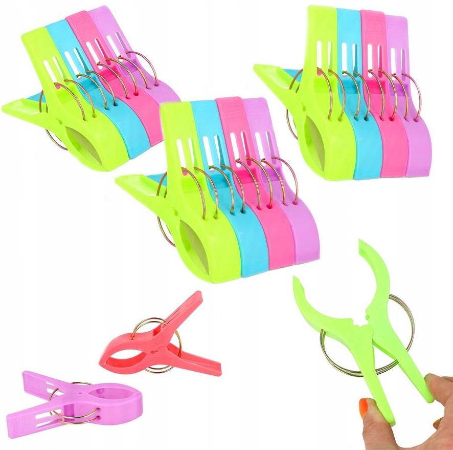 KLIPSY SPINACZE KLAMERKI Masz problem z wieszaniem ręczników czy pościeli, bo standardowe klamerki na pranie są za małe i nie utrzymują ciężaru mokrych ręczników? Mamy dla Ciebie idealne rozwiązanie! Komplet 12 sztuk dużych spinaczy do ręczników, obrusów, pościeli, koców, itp. DOSKONAŁE WSZĘDZIE TAM GDZIE POTRZEBA COŚ PRZYPIĄĆ! WYMIARY KLAMEREK Wymiary jednej klamerki: 14,8 cm x 2,7 cm W zestawie znajduje się 12 sztuki kolorowych klamerek. Duże spinacze idealnie nadają się do wieszania mokrych ręczników lub koców, które po wypraniu są ciężkie i tradycyjne klamerki mają problem z utrzymaniem ich ciężaru. WSZECHSTRONNE ZASTOSOWANIE Uniwersalne zastosowanie sprawia, że klamerki doskonale sprawdzają się w całym domu: do wieszania prania, np. ręczniki, pluszaki, buty, koce, pościel do wieszania butów do zamykania otwartych opakowań z produktami spożywczymi do przypinania koców i ręczników na fotele ogrodowe do przypinania obrusów na stołach ogrodowych aby wiatr je nie porywał i unosił Idealne do zamknięcia otwartej paczki kaszki, płatków, musli czy kawy. i wiele innych... Nowoczesne, mocne i wielofunkcyjne klamerki mają atrakcyjny i poręczny kształt. Spinacze wykonane są z bardzo dobrych jakościowo materiałów. Mają mocny ścisk i pewnie trzymają.
