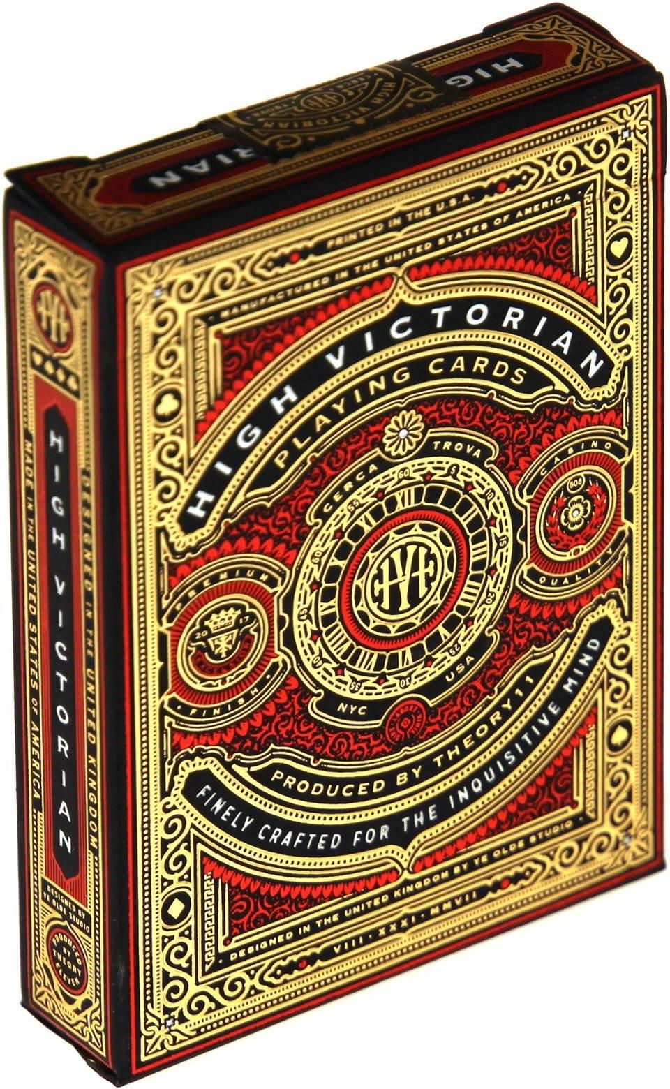 Bicycle Karty High Victorian Czerwone   Karty Bicycle to wieloletnia tradycja, synonim jakości i prestiżu. Oprócz tego, że są doskonałymi kartami do gry m. in. w pokera czy brydża, mają także dużą wartość kolekcjonerską ze względu na serie limitowane. Zastosowanie w produkcji najnowszej technologii, pozwala na sprawne wykonywanie nimi najtrudniejszych sztuczek karcianych.   Karty Bicycle wykończone są technologią "Air Cushion", która sprawia, że tasowanie jest niezwykle łatwe dzięki gładkiej powierzchni kart. Każda z talii jest wytrzymała i odporna na działanie czynników zewnętrznych. Lustrzana symetria detali i wiele innych równie innowacyjnych metod zdobniczych, stawia je w ścisłej czołówce karcianej.     Karty zostały zainspirowane zawiłym, zapierającym dech stylem epoki wiktoriańskiej. Każdy element został zaprojektowany od podstaw ze żmudną, nieustającą dbałością o szczegóły.   Każda pojedyncza karta w talii High Victorian została zaprojektowana od zera - nawet asy, jokery pokazują ogromne bogactwo ozdób - kwintesencję epoki wiktoriańskiej. Jednym słowem: karty zapierające dech w piersiach!   Karty do gry Bicycle to najczęściej używane karty do gry na świecie. Znajdziesz je wszędzie, od najbardziej ekskluzywnych stołów w Las Vegas, po rodzinny stół w Twoim domu.