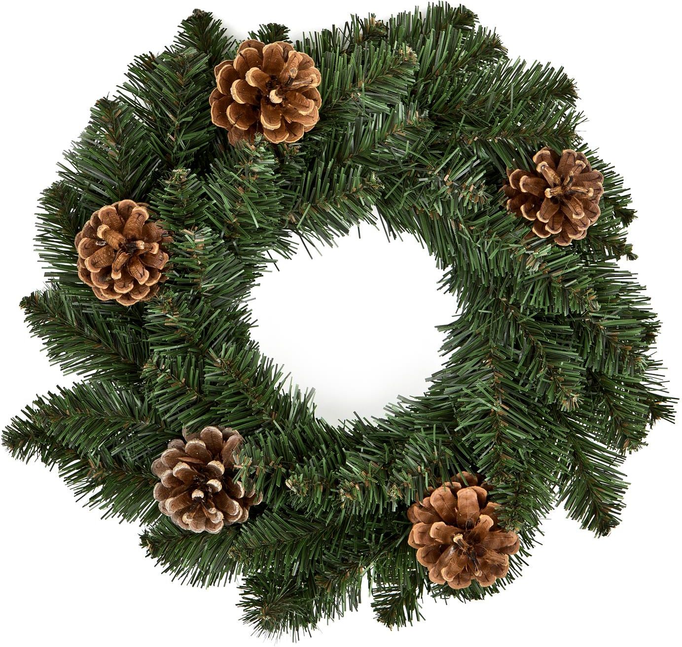 Dekoracyjny wianek świąteczny w kolorze zielonym. Wśród igieł widoczne są zielone igiełki i ozdobne szyszki. Średnica wianka ok. 35 cm pozwala zastosować go dla efektownego przyzdobienia drzwi. Będzie widoczny z daleka. Nie zwiędnie, a igiełki nie odpadną. Tworzywo sztuczne, z którego wykonany został wianek, jest odporne na przebarwienia. Wianek może być w formie okrągłej lub jako stroik na stole, lub drzwiach. Wianek udekoruje też wszelkie stoły, komody czy ławy. Otwór w środku pozwala na umieszczenie w nim np. świecznika czy figurki. Wówczas powstaje pełna kompozycja, a efekt zapiera dech w piersiach. Zgromadzeni przy stole goście z pewnością będą zachwyceni. Specyfikacja Producent: Bizar Materiał: tworzywo sztuczne Kolor: zielony Kształt: okrągły Wyposażenie: szyszki Zdjęcie tytułowe ma charakter poglądowy. Prezentowana aranżacja może zawierać elementy dekoracyjne niewchodzące w skład zestawu. Szczegóły dotyczące zawartości znajdują się w opisie produktu.