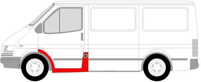 Panel naprawczy l pasuje do: ford transit iv fl, transit iv fl ii 01.91-07.00. Strona zabudowy: z przodu z lewej Rodzaj blachy: Część kompletna