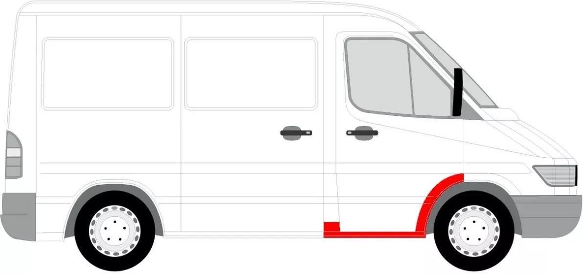 Próg przód p (z reperaturką błotnika i słupka) pasuje do: mercedes sprinter 901, 902, 903, 904, 905, vw lt ii 01.95-07.06. Strona zabudowy: z przodu po prawej Ograniczenia producenta: + fragment blotnika Ograniczenia producenta: + fragment slupka Data produkcji do: 05.2006