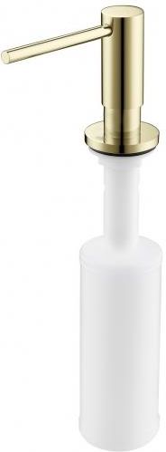 Blue Water Alfa kuchenny dozownik na płyn, kolor złoty połysk 5901730616378 Kuchenny dozownik na płyn Blue Water, kolor złoty połysk 5901730616378 - cechy produktu: - typ produktu: dozownik na mydło/płyn do mycia naczyń, - montaż: w blacie / na zlewie, - widoczny element wykonany z metalu, - pojemnik na płyn plastikowy, - otwór na dozownik: ∅35 - pojemność: około 320ml - kolor złoty połysk