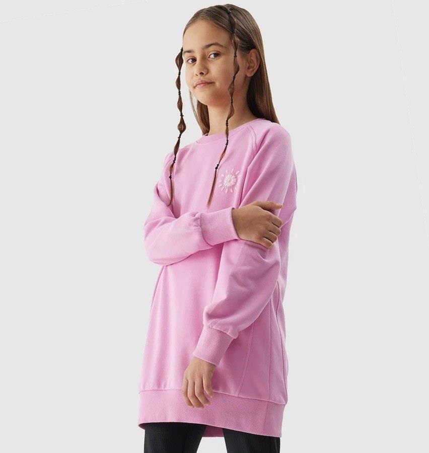 Bluza 4F 4FJWSS24TSWSF0946 56SBluza dziewczęca 4FJWSS24TSWSF0946 4F to doskonały wybór dla każdej dziewczynki. Wykonana z wysokiej jakości materiałów, gwarantuje komfort noszenia. Bluza posiada dłuższy krój oraz okrągły dekolt, co sprawia, że jest idealna na chłodniejsze dni. Dodatkowo, bluza została ozdobiona grafiką na piersi oraz na plecach, co nadaje jej wyjątkowego charakteru i uroku. Ściągacze na rękawach zapewniają doskonałe dopasowanie do sylwetki. Ta bluza marki 4F to połączenie stylu i wygody. Cechy: ściągacz na dole i przy rękawach dłuższy krój grafika na plecach logo marki właściwości: miękkość, oddychalność Materiał: główny: 80% bawełna, 20% poliester dodatkowy: 97% bawełna, 3% elastan