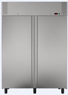 Podwójna szafa chłodnicza o pojemności ok.1400 litrów. Wykonana w całości ze stali nierdzewnej, zewnętrzny korpus ze stali szlifowanej. Wyposażona w dynamiczny system chłodzenia. Cechy produktu Elektroniczny sterownik temperatury z wyświetlaczem Automatyczne odszranianie Automatyczne odparowanie skroplin Korpus zewnętrzny ze stali nierdzewnej szlifowanej Drzwi pełne Samodomykające się drzwi Regulowane nogi Prowadnice półek Półki metalowe plastyfikowane Zamek drzwi mechaniczny Wnętrze ze stali AISI 430 Automatyczna praca wentylatora Korpus zewnętrzny ze stali AISI 430 Chłodzenie dynamiczne za pomocą monobloku Magnetyczna uszczelka drzwi Szafy z linii BASIC wyposażone zostały w łatwo wymienialny monoblok z czynnikiem chłodniczym R290. Dzięki zastosowaniu ekologicznej izolacji korpusu o grubości 70mm stanowi najbardziej nowoczesny i energooszczędny produkt w swojej klasie. Urządzenie zostało wykonane ze stali nierdzewnej i jest przystosowane do pracy w warunkach otoczenia +43 st. C. Urządzenie prezentowane w wersji standardowej. Istnieje możliwość zamówienia urządzenia z dodatkowym wyposażeniem: Regulowane nogi INOX Komplet kółek Półki inox Oświetlenie - barwa neutralna Wtyczka angielska Opcje dodatkowo płatne. W celu indywidualnego dopasowania i wyceny urządzenia prosimy o kontakt z Gastropuls.pl