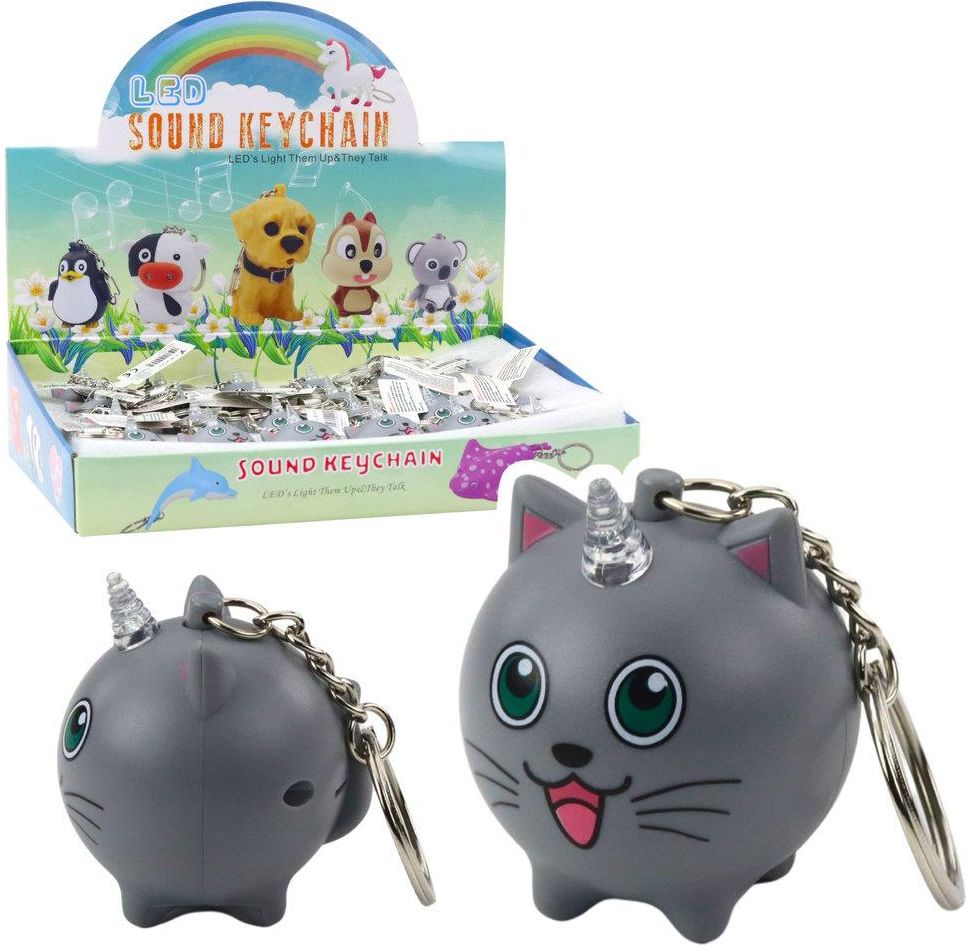 Brelok Do Kluczy Plecaka Kotek Jednorożec Róg Led Dźwięki Szary Kraków