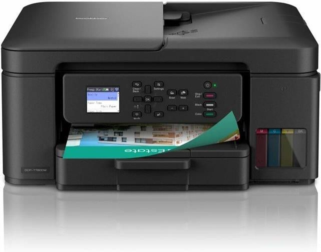 Brother  DCP-T780DW Kompatybilna z siecią kolorowa drukarka atramentowa Szybkość drukowania do 16 stron na minutę czarno-białe Rozdzielczość drukowania do 1. 200 x 6 000 dpi  Szybkość drukowania do 16 stron na minutę czarno-białe.200 x 6000 dpi ADF, dupleks, WLAN, Hi-Speed USB 2.0 Brother …