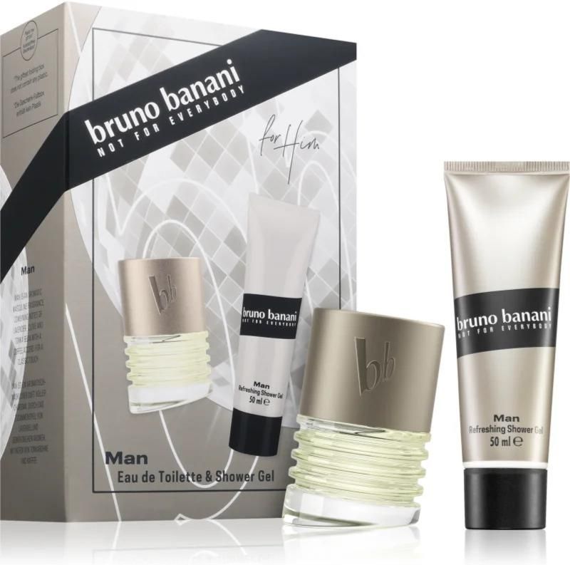 Bruno Banani Man, 2 szt., Zestawy dla mężczyzn dla mężczyzn, Szukasz idealnego prezentu dla swojej drugiej połówki, brata, taty, a może przyjaciela? Zestaw perfum dla mężczyzn Bruno Banani Man z pewnością ucieszy każdego mężczyznę. Podaruj swoim bliskim zestaw, który zawiera nie jedną, a kilka pachnących niespodzianek. Właściwości: kosmetyki perfumowane przedłużają trwałość zapachu zestaw zawiera perfumy i dodatki kosmetyczne z tej samej linii doskonały pomysł na prezent Zawartość zestawu: Bruno Banani Man woda toaletowa 30 ml Bruno Banani Man żel pod prysznic 50 ml