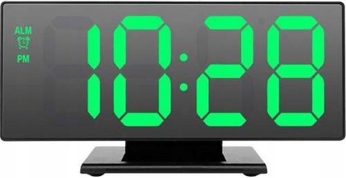 Budzik cyfrowy z wyświetlaczem Budzik ma wyświetlacz LED, co ułatwi odczytanie godziny nawet w ciemności i z dalekiej odległości. Cechy produktu: Wyświetlacz LED o wymiarach 18,5 x 7,5 cm Duże cyfry o wysokości: 5,5 cm Alarm wyłączany na przycisk Wyświetla czas w formacie 24 lub 12 godzinnym W godzinach 18.00 - 7.00 wyświetlacz automatycznie przyciemnia się Lustrzany wyświetlacz, budzik może służyć również jako lusterko Wyświetla temperaturę w pomieszczeniu, możliwość zmiany jednostki na stopnie Celsjusza oraz Fahrenheita Wyświetla datę Wyświetlacz naprzemiennie wyświetla datę, godzinę, temperaturę. Posiada również możliwość wyświetlania każdego z tych parametrów bez przerwy Zasilany sieciowo lub USB (w zestawie wyłącznie kabel USB) Dodatkowe zasilanie baterią CR2032. Działanie zegara (nie wyświetlacza) jest podtrzymywanie w przypadku braku głównego zasilania