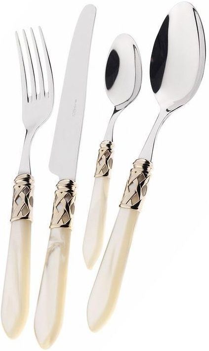 Uroczysty posiłek wymaga dokładnego zaplanowania. Biała porcelana, elegancki obrus, stonowane dodatki i oczywiście odpowiednie sztućce. Takie, które nie odwrócą uwagi od dań, a dodadzą im charakteru. Kolekcja Aladdin włoskiej marki Bugatti, to klasyka we współczesnym aranżowaniu stołu. Sztućce mają smukłe sylwetki oraz mocno zarysowane linie. Ich minimalistyczne wzornictwo połączone jest z wysokiej klasy rączkami wykonanymi na wzór złotej masy perłowej. Bo elegancja musi łączyć się z jakością! Podkreślą one urok stylowej zastawy. Elementy zestawu: - 6 x łyżek obiadowych do zupy, - 6 x widelcy obiadowych, - 6 x noży obiadowych, - 6 x łyżeczek do herbaty. Właściwości: - materiał: stale nierdzewna, - kolor: złoty. Współpracujemy z oficjalnym dystrybutorem marki Bugatti w Polsce. Kupując w naszym sklepie, mają Państwo gwarancję zakupu oryginalnego produktu. Dziękujemy za zaufanie.Nie musisz również martwić się dostawą. Dbamy o bezpieczne zapakowanie towaru. Jeżeli masz jeszcze jakieś pytania - napisz lub zadzwoń! tel. 660 56 57 58 e-mail: bok@kuchniapremium.pl