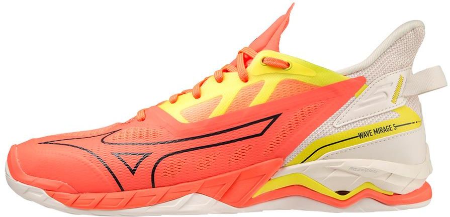 BUTY MIZUNO WAVE MIRAGE 5 X1GA235002 44 Niewielka waga Wave Mirage 5 sprawia, że jest to idealny partner dla każdego skrzydłowego i jego szybkiej gry. Dzięki nowej konstrukcji cholewki "bootie" idealnie dopasowuje się do stopy i zapewnia większe poczucie kontaktu z nawierzchnią. Ciesz się swobodą ruchów w tych niezwykle lekkich butach halowych.Lekkie i szybkie buty do piłki ręcznej łączące wspaniałe cechy technologii Mizuno wave, podeszwy środkowej PoWnCe i MIZUNO ENERZY. Dzięki nowej konstrukcji cholewki "bootie" jeszcze lepiej dopasowuje się do stopy i zapewnia stabilność. Cechy Technologia wave firmy Mizuno zapewnia dynamiczną amortyzację i niezrównaną zwinność podczas poruszania się po boisku. Połączenie mieszanki materiałów PoWnCe i MIZUNO ENERZY w podeszwie środkowej zapewnia wysoką elastyczność i transfer energii. Podeszwa zewnętrzna z rowkami D-Flex-Groove zapewnia niezrównane przyspieszenie. Innowacyjna konstrukcja cholewki "bootie" wykorzystuje dwie oddzielne warstwy, wewnętrzną i zewnętrzną, z elastycznego materiału. Dzięki temu jeszcze lepiej dopasowuje się do kształtu stopy i idealnie do niej przylega. Technologie Dla szybkich graczy, którzy potrzebują lekkiego i szybkiego buta oraz bezpośredniego kontaktu z nawierzchnią. Szczególnie odpowiednie dla skrzydłowych. Mizuno Wave, Mizuno Enerzy, Dura Shield, DynamotionFit, Mizuno Intercool, PoWnCe, D-Flex Groove, XG Rubber, Removable Insock Materiały: Cholewka wykonana w ponad 50% ze skóry syntetycznej pochodzącej z recyklingu. Wysokość podeszwy zewnętrznej (w mm): 17/24
