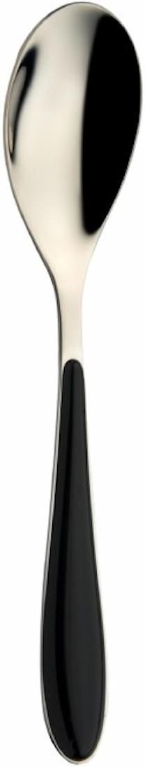 Casa Bugatti GIOIA Łyżka obiadowa czarna Casa Bugatti Casa Bugatti GIOIA Łyżka obiadowa - czarna Sztućce wykonano z wysokiej jakości stali nierdzewnej 18/10. Ich rączki wzbogacono kolorowym tworzywem ABS, które zapewnia nie tylko piękny wygląd, ale także sprawia, że wygodnie i stabilnie leżą w dłoni. Główki sztućców są wyprofilowane tak, aby zapewnić wysoki komfort spożywania posiłków. Właściwości: Materiał: stal nierdzewna 18/10, ABS Wymiary: 21,5 cm Produkt można myć w zmywarce do 50/55°C, zalecane mycie ręczne