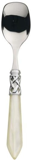 Sztućce Casa Bugatti ALADDIN - łyżeczka do cukru i lodów Łyżeczka do cukru i lodów z serii Aladdin została wykonana ze stali szlachetnej 18/10 oraz akrylu stylizowanego na masę perłową. Waga: 70 g Długość: 15,5 cm Materiał: Stal szlachetna 18/10, akryl stylizowany na masę perłową Mycie w zmywarce: …