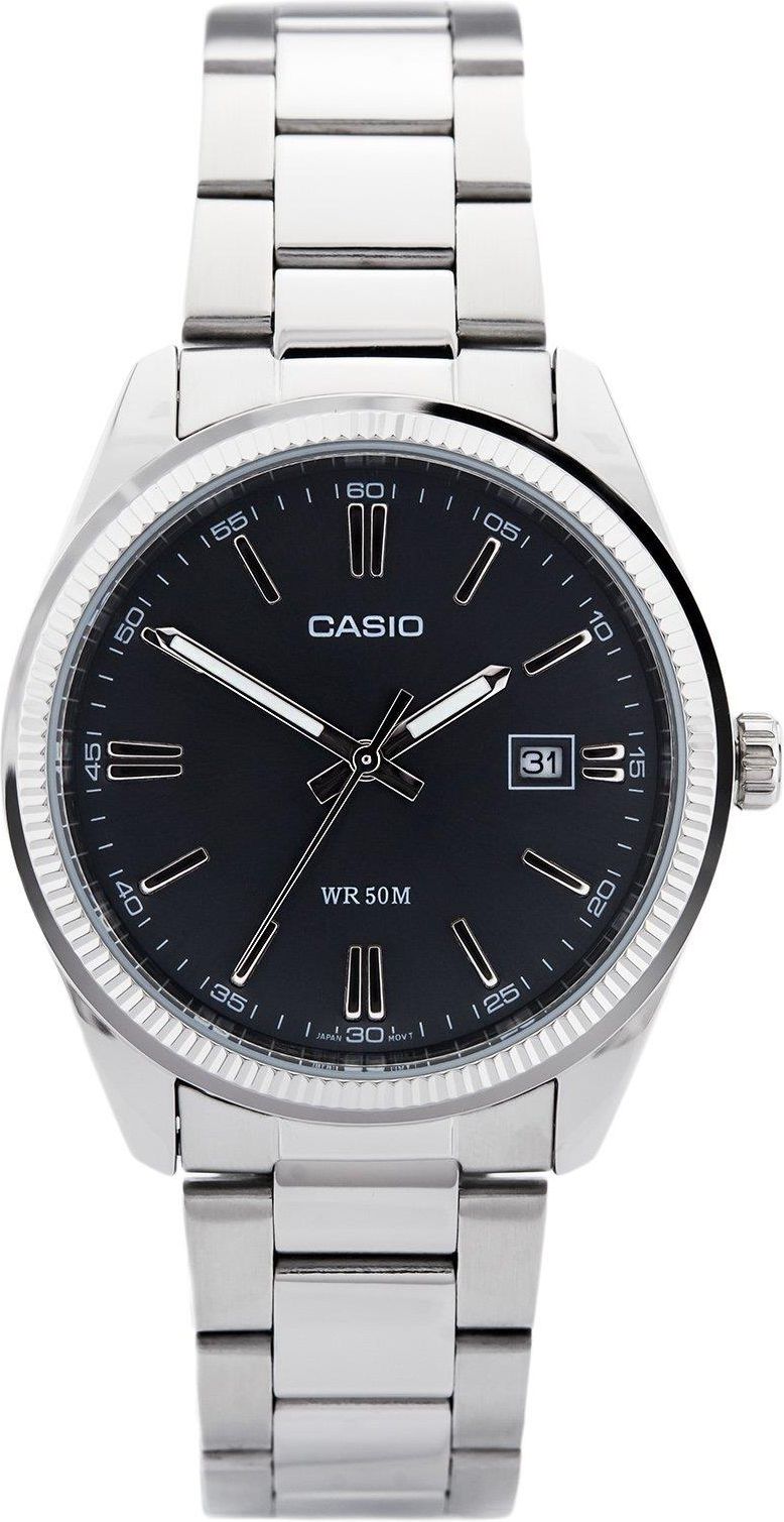 Casio Laikrodis Mtp1302Pd-1A1 Opis funkcji: Klasyczny zegarek CASIO MTP-1302PD-1A1VEF dla Panów, niezawodny zegarek z klasycznej linii CASIO. Cechuje go wytrzymała i solidna konstrukcja. Metalowa koperta i stalowa bransoleta charakteryzują się dobrą jakością wykonania. Wskazówki zostały powleczone specjalną warstwą fosforyzującą świecącą w ciemnościach. Praktyczny i niezawodny mechanizm kwarcowy zasilany baterią srebrową został dodatkowo wyposażony w datownik wskazujący aktualny dzień miesiąca. Wodoszczelność na poziomie 5 atm to odporność na zachlapania i krótkotrwałe zanurzenie w wodzie. Casualowy model dla Panów na każdą okazję. Wymiary: Koperta: 38mm Tarcza: 32mm Grubość: 9,7mm Bransoleta: szerokość: 20mm Obwód: max. 210mm