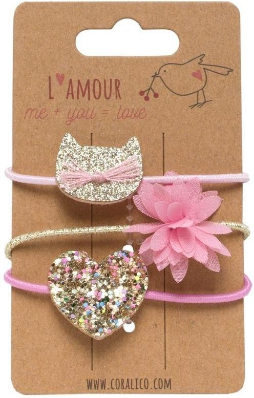 Zestaw gumek z motwem kotka, kwiatka i serduszka. Odcienie różu, bieli i złota EAN: 5907371845177