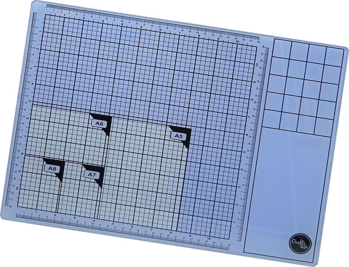 Szklana podkładka robocza z liniami pomiarowymi i siatkami, na których rysowane są różne formaty w cm lub calach (1 cal = 2,54 cm). Wysokiej jakości materiał szklany, bezpieczne zaokrąglone rogi. Idealna do cięcia nożem, skalpelem itp. Mata szklana nie przecina się i może być używana jako podkładka do pisania lub stemplowania.- Unikalne akcesorium na biurko - Najwyższa odporność na smugi i zadrapania - Płaska powierzchnia umożliwia płynne pisanie, cięcie, klejenie, stemplowanie i wiele więcej - Antypoślizgowy spód - Rozmiar: 42x32 cm, grubość 0,5 cm - Nieodpowiednie dla dzieci poniżej 3 roku życia