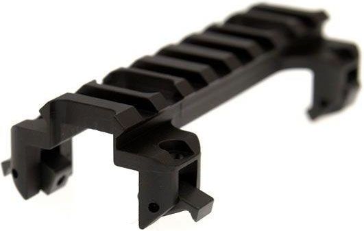 Niska szyna montażowa RIS do replik typu MP5 Metalowa szyna montażowa do replik z rodziny MP5, dzięki której użytkownik ma możliwość zamontować na pistolecie maszynowym celownika optyczny, bądź innych akcesoriów.