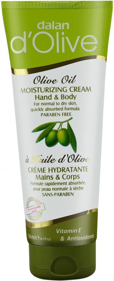 Nawilżający oliwkowy krem do ciała i rąk marki Dalan d'Olive. Firma Dalan, specjalizuje się od 70 lat w produkcji dermokosmetyków na bazie 100% śródziemnomorskiej oliwy z oliwek z regionu Morza Egejskiego. Krem, dzięki odpowiedniej konsystencji szybko się wchłania. Przywraca zdrowy i idealny wygląd. Mocno nawilża i sprawia, że skóra staje się miękka i elastyczna. Przeciwutleniacze zawarte w oliwie z oliwek, pomagają odbudować w skórze naturalny system ochronny przed wpływem czynników zewnętrznych. Stworzony przez firmę Dalan specjalizującą się od 70 lat w produkcji wysokiej jakości kosmetyków na bazie 100% środziemnomorskiej oliwy z oliwek z rejonu Morza Egejskiego dla skóry wyjątkowo suchej i popękanej – zawiera wysoce skoncentrowaną śródziemnomorską oliwę z oliwek intensywnie odżywia suchą skórę natychmiast zapewnia miękkość i elastyczność ma nietłustą konsystencję szybko sie wchłania natychmiast uzupełniając poziom nawilżenia i odżywienia skóry rewitalizuje i doskonale, długotwale ochrania bardzo suchą skórę w ekstremalnych warunkach idealny do stosowania w miejscach wyjątkowo przesuszonych, takich jak spierzchnięte dłonie, popękane pięty i suche usta Aqua, Petrolatum, Ozokerite, Hydrogenated Castor Oil, Glyceryl Isostearate, Polyglyceryl-3-Oleate, Isopropyl Myristate, Glycerin, Magnesium Sulphate, Parfum, Polyaminopropyl, Biguanide, Methylisothiazolinone, Olive (Olea Europaea) Oil, Coumarin, Limonene, Hexyl Cinnamal, Citronellol, Alpha Isomethyl Ionene, Eugenol Dalan d’Olive to najwyższej jakości naturalne dermokosmetyki na bazie oliwy z oliwek. Zostały stworzone przez firmę Dalan, specjalizującą się od 70 lat w udoskonalaniu jakosci kosmetyków. Dzięki wysokiemu poziomowi witaminy E, a także przeciwutleniaczy zawartych w śródziemnomorskiej oliwie z oliwek, produkty d’Olive natychmiast po zastosowaniu nawilżają, odżywiają i przywracają skórze i włosom zdrowie i urodę oraz chronią skórę i włosy przed szkodliwymi czynnikami zewnetrznymi przyspieszającymi procesy starzenia. Skuteczność produktów d’Olive na skórę i włosy udowodniono w testach przeprowadzonych przez niezależne międzynarodowe akredytowane laboratoria.