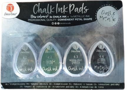 Poduszki z tuszem kreda metaliczny 4 szt. szare Dodaj inny wymiar do ręcznie robionych kartek okolicznościowych i innych kreacji za pomocą tego niezwykłego tuszu. Specjalny kształt kropli zapewni najlepszy efekt.W zestawie 3 szt. tuszu kredowego i 1 szt. tusz metaliczny.