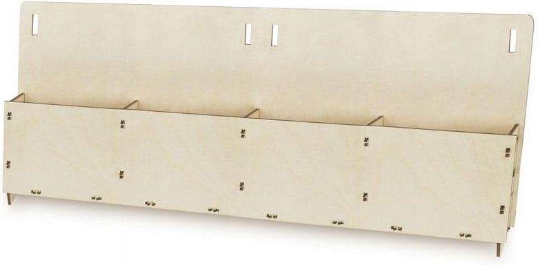 Deku - Drewniany stojak na ulotki - do składaniaA5x4 65,5x22,5x12 cm 570238 Stojak wykonany jest ze sklejki brzozowej za pomocą lasera CNC. Sklejka posiada atest higieniczny. W górnej części znajdują się otwory, co umożliwia powieszenie stojaka na ścianie lub na specjalnie zaprojektowanym stojaku. W dolnej części stojak posiada nóżki do postawienia go na płaszczyźnie. Istnieje możliwość wykonania dodatkowo grawerunku np. logo firmy, adres lub nazwa produktu. Cena nie obejmuje grawerunku. Koszt wykonania ustala się indywidualnie po wcześniejszym przesłaniu projektu. Rozmiar grawerunku: maksymalna wysokość to 3 cm. Stojak umożliwi wygodną organizację ulotek, kopert lub dokumentów formatu A5. Możesz go dekorować i spersonalizować na swój własny, unikalny sposób (po wcześniejszym ustaleniu). Produkt do samodzielnego złożenia. Dane techniczne: Wymiary: 65,5x22,5x12 cm (szerokość x wysokość x głębokość) W kieszeni stojaka mieszczą się ulotki o wymiarach 148x210 mm. Waga:0,615 kg Kod produktu: 570238 Kod kreskowy: 5900168570238 Dysponujemy laserem CNC. Możemy wykonać dla Ciebie dowolny projekt stojaka lub grawerunek na różnych materiałach:sklejka, drewno, filc, pleksi, tektura i inne. Możemy również wykonać cięcie i grawerowanie na materiale klienta.