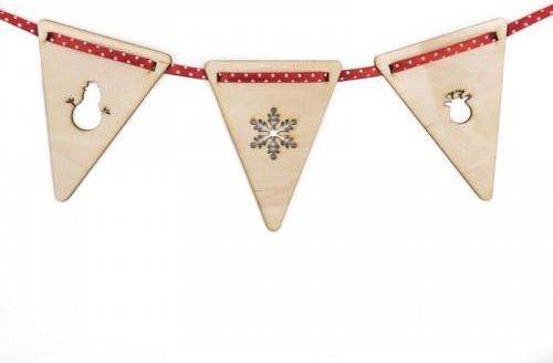 Deku – Mini girlanda świąteczna 000229 Girlanda z drewnianymi proporczykami na których wycięte są świąteczne motywy. Proporczyki są drewniane, wykonane z wysokiej jakości sklejki o grubości 3 mm i połączone ozdobną wstążką w wybranym kolorze. Girlanda doskonale nadaje się jako ozdoba na Święta …