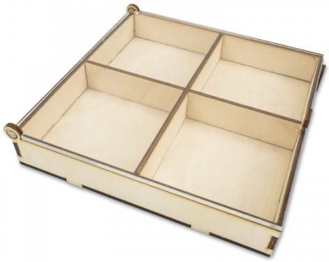 Deku – Pudełko zamykane przezroczystym akrylowym wiekiem– 14x14x2,5 cm 577008 Pudełko wykonane ze sklejki brzozowej o grubości 3 mm. Zamykane przezroczystym wiekiem wykonanym z akrylu, dzięki czemu przedmiot jest w całości widoczny. W środku posiada przegrody dzielące je wewnątrz na 4 części. …