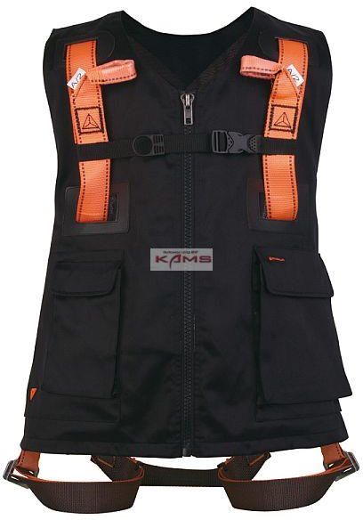 Szelki zintegrowane z kamizelką roboczą. Zapewniają pewne podparcie przy wykonywaniu prac na wysokościach. Zamki umożliwiają regulację szelek a tym samym ułatwiają dopasowanie do sylwetki użytkownika. 4 kieszenie ( w tym jedna na telefon) dają możliwość przechowania niezbędnych podczas pracy akcesoriów. Poliestrowa podszewka z siatki zapewnia doskonała wentylację. Zapinanie na zamek błyskawiczny gwarantuje komfort użytkowania.