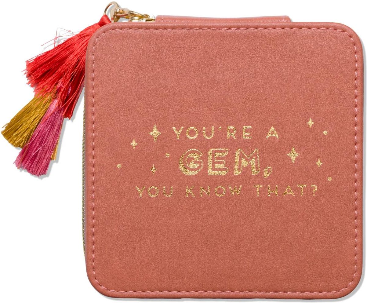 Etui na biżuterię 'You're A Gem' | DESIGNWORKS INKTrzymaj swoją biżuterię na swoim miejscu dzięki naszemu etui na biżuterię!Niezwykle elegancka mała szkatułka - etui na biżuterię wykonana z najwyższej jakości skóry ekologicznej.To etui idealnie pasuje do torby lub bagażu, ułatwiając zlokalizowanie cennych przedmiotów.Miękkie zamszowe wnętrze utrzymuje biżuterię w bardzo dobrym stanie, jednocześnie oferując dużo miejsce na pierścionki, kolczyki, naszyjniki, bransoletki i nie tylko!Misją Designworks Ink jest tworzenie produktów dla miłośników świetnego designu, dbałości o szczegóły i wyjątkowej jakości. W ofercie Designworks Ink znajdziesz notatniki, zestawy podróżne, artykuły biurowe a nawet puzzle. Jeśli kochasz otaczać się pięknymi i niebanalnymi przedmiotami – ta marka jest wprost stworzona dla Ciebie. Sprawdź pełną ofertę i zanurz się w oceanie pastelowych cacuszek, które rozświetlą Twój dzień