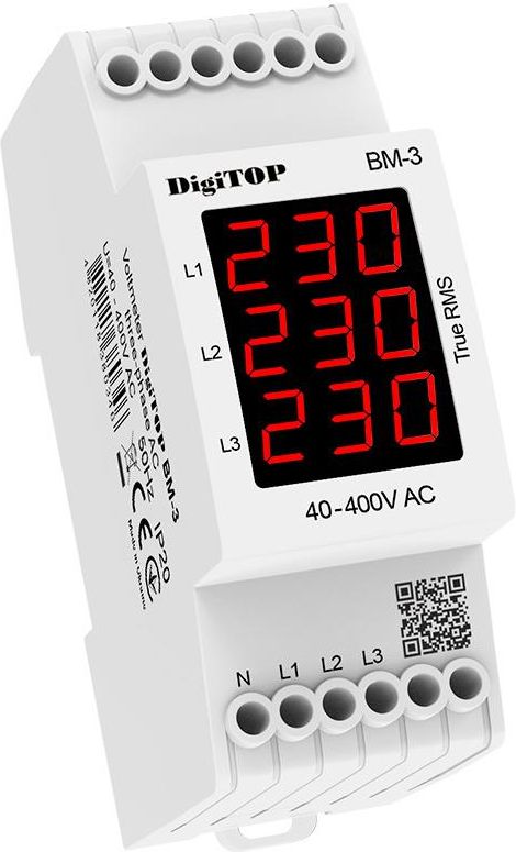 Woltomierz Trójfazowy TOVME-3 – Profesjonalny miernik napięcia 3-fazowego do rozdzielni, instalacji domowych i przemysłowych Woltomierz trójfazowy TOVME-3 to zaawansowane urządzenie przeznaczone do stałego monitorowania napięcia w instalacjach 3-fazowych. Został zaprojektowany z myślą o elektrykach, automatyce oraz użytkownikach, którzy chcą mieć pełną kontrolę nad parametrami swojej sieci. Dzięki czytelnemu, trzycyfrowemu wyświetlaczowi oraz wysokiej precyzji pomiaru ±1%, urządzenie pozwala szybko ocenić stan instalacji elektrycznej i reagować na wszelkie nieprawidłowości. Gdzie można zastosować woltomierz TOVME-3? To urządzenie sprawdzi się w bardzo szerokim zakresie zastosowań. Można go używać m.in. w: Rozdzielniach elektrycznych w domach jednorodzinnych Jeśli masz instalację trójfazową, ten woltomierz pozwoli Ci na bieżąco kontrolować napięcia na wszystkich fazach (L1-N, L2-N, L3-N). To szczególnie ważne przy nowoczesnych urządzeniach takich jak pompy ciepła, indukcje, ładowarki do samochodów elektrycznych czy duże AGD. Warsztatach i garażach W miejscach, gdzie pracują elektronarzędzia o dużej mocy, spawarki, kompresory czy tokarki, warto mieć pewność, że napięcie mieści się w bezpiecznych granicach. TOVME-3 natychmiast pokaże, jeśli na którejś fazie pojawi się problem. Zakładach przemysłowych i halach produkcyjnych W przemyśle stabilność napięcia to klucz do bezawaryjnej pracy maszyn. Ten miernik świetnie sprawdza się jako stałe wyposażenie szaf sterowniczych oraz tablic kontrolnych, sygnalizując wszelkie odchylenia od normy. Instalacjach fotowoltaicznych i systemach zasilania awaryjnego W połączeniu z falownikami, agregatami czy UPS-ami miernik umożliwia ocenę jakości napięcia wejściowego. Dokładny zakres pracy 60–450V AC pozwala wykrywać zarówno spadki, jak i niebezpieczne przepięcia. Domkach letniskowych, gospodarstwach rolnych i budynkach gospodarczych W miejscach, gdzie często zdarzają się wahania napięcia lub obciążenia są niestabilne (silniki, pompy, chłodnie), TOVME-3 ułatwi kontrolę i zapobiegnie uszkodzeniom urządzeń. Najważniejsze funkcje i zalety miernika TOVME-3 Trójfazowy pomiar napięcia – odczyt wszystkich trzech faz naraz. Szeroki zakres 60–450V AC – idealny do praktycznie każdej instalacji 3-fazowej. Wysoka dokładność ±1% – precyzyjny i wiarygodny pomiar. Alarm niskiego napięcia (L0) i wysokiego napięcia (H1) – sygnalizacja odchyleń od normy. Odporność na przepięcia +5% przez godzinę – zwiększona trwałość. Łatwy montaż na szynie DIN (DIN-Rail) – szybka instalacja w każdej rozdzielni. Niski pobór energii – tylko 3W – urządzenie energooszczędne. Izolacja między kanałami – bezpieczeństwo pomiaru i stabilna praca. Wyświetlacz startowy 888 (800 ms) – szybki test poprawności działania. Zakres temperatur pracy 0°C do +40°C – idealny do standardowych warunków instalacyjnych. Stopień ochrony IP20 – zabezpieczony przed dotykiem i podstawowymi zanieczyszczeniami. Dlaczego warto mieć woltomierz w swojej instalacji? Tego typu urządzenie to nie tylko “gadżet” – to realna ochrona sprzętu oraz możliwość wykrycia problemów, zanim doprowadzą do kosztownych awarii. Wiele urządzeń domowych i przemysłowych jest bardzo czułych na wahania napięcia. Dzięki TOVME-3 możesz: monitorować napięcie na wszystkich fazach w czasie rzeczywistym, szybko zauważyć przeciążenie lub nierównomierne obciążenie faz, wykryć zanik fazy zanim uszkodzi się silnik lub falownik, wychwycić zbyt niskie napięcie, które powoduje “męczenie się” urządzeń, wykryć przepięcia mogące uszkodzić elektronikę. To szczególnie ważne w domach z dużą ilością elektroniki, w firmach oraz wszędzie tam, gdzie praca urządzeń musi być stabilna. Wymiary woltomierza TOVME-3 Front (panel z wyświetlaczem) Wysokość: 90 mm Szerokość: 18 mm Widok z boku Wysokość całkowita: 68 mm Wysokość części głównej: 45 mm Głębokość urządzenia (od frontu do końca obudowy): 28 mm + 22 mm + 16 mm = 66 mm całkowitej głębokości Dodatkowe wymiary Wysokość dolnej części (z zaciskami): 35 mm