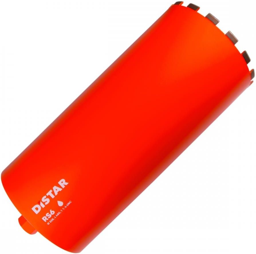 Wiertło diamentowe Distar DDS-W 225x450x1 1/4 UNC RS6 (10170085225) Wiertło RS6 to specjalistyczne wiertło diamentowe zaprojektowane do wiercenia w silnie zbrojonym betonie. Parametry techniczne Średnica: 225 mm Długość: 450 mm Chłodzenie: Z wodą Typ chwytu: 1 1/4 UNC Przeznaczenie: Beton zbrojony Najważniejsze cechy Distar DDS-W 225x450x1 1/4 UNC RS6 (10170085225) Wysoka prędkość wiercenia – miękkie spoiwo i zaawansowany diament w segmencie umożliwiają szybkie wiercenie nawet w drobnoziarnistym betonie zbrojonym (do 6 cm na minutę). Długowieczność – przy średnicy 102 mm wiertło może osiągnąć żywotność do 7 metrów bieżących w betonie klasy M400 z prętami zbrojeniowymi o średnicy 22 mm. Ekstremalna wytrzymałość – laserowo spawane segmenty diamentowe gwarantują odporność na duże obciążenia i trudne warunki pracy. Dostępne rozmiary – szeroki wybór średnic od 32 mm do 300 mm, stała długość wynosząca 450 mm. Wiertło RS6 to niezawodne narzędzie dla profesjonalistów, które łączy szybkość, trwałość i odporność na najtrudniejsze materiały.
