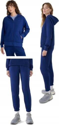 Dres damski firmy 4F model: 4FWMM00TSWSM1763 + 4FWMM00TTRO1138 kolor: ODCIENIE GRANATOWEGO 031S Stylowy i komfortowy komplet dresowy, składający się z rozpinanej bluzy z kapturem oraz spodni dresowych, sprawdzi się zarówno w codziennych stylizacjach, jak i podczas aktywności sportowej. Połączenie …
