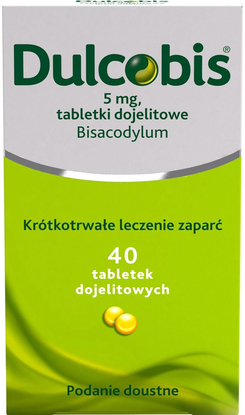 Nazwa: Dulcobis Postać: tabl.dojelit. Dawka: 5 mg Opakowanie: 20 tabl. Skład: Jedna tabletka dojelitowa zawiera 5 mg bisakodylu ( Bisacodylum ). Substancje pomocnicze: laktoza 33,2 mg, sacharoza 23,4 mg. Wskazania: Krótkotrwałe, objawowe leczenie zaparć. W przygotowaniu do badań diagnostycznych, w leczeniu przed i pooperacyjnym, w stanach wymagających ułatwienia defekacji. Przeciwwskazania: Dulcobis jest przeciwwskazany u pacjentów z niedrożnością jelit, z ostrymi stanami w obrębie jamy brzusznej, w tym z zapaleniem wyrostka robaczkowego, ostrymi chorobami zapalnymi jelit oraz z silnymi bólami brzucha z towarzyszącymi mdłościami i wymiotami, które mogą być objawem poważnych chorób. Dulcobis jest również przeciwwskazany w stanach ciężkiego odwodnienia oraz u pacjentów ze znaną nadwrażliwością na bisakodyl lub jakikolwiek inny składnik produktu. W przypadku rzadkich chorób genetycznych, w których występuje nietolerancja składnika pomocniczego produktu (patrz "Specjalne ostrzeżenia i środki ostrożności"), stosowanie produktu jest przeciwwskazane. Działania niepożądane: Do najczęściej zgłaszanych działań niepożądanych podczas leczenia należą bóle brzucha i biegunka. Częstość działań niepożądanych określono na podstawie połączonego zestawu danych z 23 badań klinicznych nad preparatem Dulcobis, obejmujących 3368 pacjentów. Częstość występowania zgodnie z konwencjami terminologicznymi MedDRA: bardzo często: > 1/10; często: > 1/100, < 1/10; niezbyt często: > 1/1000, < 1/100; rzadko: > 1/10 000, < 1/1000; bardzo rzadko (< 1/10 000) częstość nieznana (nie można jej oszacować na podstawie dostępnych danych) Zaburzenia układu immunologicznego Rzadko: reakcje nadwrażliwości, obrzęk naczynioruchowy*, reakcje anafilaktyczne* Zaburzenia metabolizmu i odżywiania Rzadko: odwodnienie* Zaburzenia układu nerwowego Niezbyt często: zawroty głowy Rzadko: omdlenie Zawroty głowy i omdlenie występujące po zażyciu bisakodylu mogą się pojawić w związku z odpowiedzią wazowagalną (np. skurcze w obrębie jamy brzusznej, defekacja). Zaburzenia żołądkowo-jelitowe Często: skurcze w obrębie jamy brzusznej, ból w jamie brzusznej, biegunka, nudności Niezbyt często: uczucie dyskomfortu w jamie brzusznej, wymioty, krew w kale, uczucie dyskomfortu w okolicach odbytu Rzadko: zapalenie okrężnicy* *Działania niepożądane nie były obserwowane w żadnym z wybranych badań klinicznych dla leku Dulcobis. Szacunki opierają się na górnej granicy jego 95% przedziału ufności, obliczanego dla całej populacji leczonych pacjentów zgodnie z wytycznymi UE (3/3056, który odnosi się do "rzadko"). Zgłaszanie podejrzewanych działań niepożądanych Po dopuszczeniu produktu leczniczego do obrotu istotne jest zgłaszanie podejrzewanych działań niepożądanych. Umożliwia to nieprzerwane monitorowanie stosunku korzyści do ryzyka stosowania produktu leczniczego. Osoby należące do fachowego personelu medycznego powinny zgłaszać wszelkie podejrzewane działania niepożądane za pośrednictwem Departamentu Monitorowania Niepożądanych Działań Produktów Leczniczych Urzędu Rejestracji Produktów Leczniczych, Wyrobów Medycznych i Produktów Biobójczych, Interakcje: Przyjmowanie nadmiernych dawek produktu leczniczego i jednoczesne stosowanie leków moczopędnych oraz glikokortykosteroidów może zwiększać ryzyko zaburzeń równowagi elektrolitowej. Zaburzenia równowagi elektrolitowej mogą nasilać działanie glikozydów nasercowych. Dawkowanie: Produkt przeznaczony jest do krótkotrwałego stosowania. Okres samodzielnego stosowania produktu leczniczego Dulcobis nie powinien przekraczać 5 dni. Dawkowanie Jeśli lekarz nie zaleci inaczej, zaleca się następujące dawkowanie: Krótkotrwałe leczenie zaparć: Dorośli : 1-2 tabletki dojelitowe (5-10 mg) na dobę przed snem. Zaleca się rozpoczęcie leczenia od najmniejszej dawki. Dawkę można dostosować do najwyższej zalecanej dawki w celu uzyskania regularnych wypróżnień. Nie należy przekraczać maksymalnej dawki dobowej. Dzieci i młodzież: Młodzież i dzieci powyżej 10 lat: 1-2 tabletki dojelitowe (5-10 mg) na dobę przed snem. Zaleca się rozpoczęcie leczenia od najmniejszej dawki. Dawkę można dostosować do najwyższej zalecanej dawki w celu uzyskania regularnych wypróżnień. Nie należy przekraczać maksymalnej dawki dobowej. Dzieci 4-10 lat: 1 tabletka dojelitowa (5 mg) na dobę przed snem. Nie należy przekraczać maksymalnej dawki dobowej. Dzieci w wieku 10 lat i młodsze z przewlekłymi lub uporczywymi zaparciami powinny być leczone wyłącznie pod opieką lekarza. Sposób podawania: Aby spowodować wypróżnienie rano, produkt leczniczy należy zastosować dzień wcześniej wieczorem. Tabletki dojelitowe należy połknąć w całości i obficie popić wodą. Przygotowanie do badań diagnostycznych i zabiegów chirurgicznych: Produkt powinien być stosowany pod nadzorem personelu medycznego . Dorośli, młodzież i dzieci powyżej 10 lat : 1-2 tabletki dojelitowe (5-10 mg) rano i 1-2 tabletki dojelitowe (5-10 mg) wieczorem w dniu poprzedzającym badanie, a następnego dnia rano zalecane jest podanie natychmiast działającego środka przeczyszczającego (np. czopka). Dzieci 4-10 lat : jedna tabletka dojelitowa (5 mg) wieczorem, a następnego dnia rano zalecane jest podanie natychmiast działającego środka przeczyszczającego (np. czopka). Dawkowanie (dorośli): Krótkotrwałe leczenie zaparć: Dorośli : 1-2 tabletki dojelitowe (5-10 mg) na dobę przed snem. Zaleca się rozpoczęcie leczenia od najmniejszej dawki. Dawkę można dostosować do najwyższej zalecanej dawki w celu uzyskania regularnych wypróżnień. Nie należy przekraczać maksymalnej dawki dobowej. Przygotowanie do badań diagnostycznych i zabiegów chirurgicznych: Produkt powinien być stosowany pod nadzorem personelu medycznego . Dorośli, młodzież i dzieci powyżej 10 lat : 1