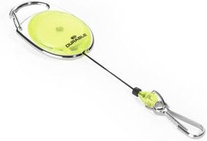 Mechanizm ściągający Jojo Style, metalowe zapięcie (karabińczyk), dł. linki 80 cm, op. detaliczne Jojo Style marki Durable to stylowy mechanizm ściągający z metalowym mechanizmem mocującym typu karabińczyk. Umożliwia szybki i prosty dostęp do kart lub identyfikatorów z otworami na klip. Świetnie sprawdzi się w magazynie, hali produkcyjnej czy w sferach bezpieczeństwa. Zarówno w przypadku kart plastikowych, jak i identyfikatorów imiennych z dziurkowaniem, produkty te mogą być stosowane na wiele sposobów. Owalne jojo wyróżnia się swoim kształtem: oferuje prosty i elegancki design. Mechanizm ściągający do identyfikatorów dostępny jest w wielu kolorach i może być zamówione z pętlą na przycisk lub hakiem sprężynowym. Karabińczyk w górnej części jojo pozwala na łatwe i sprawne przymocowanie do ubrania. Jego prosta konstrukcja czyni go funkcjonalnym i wszechstronnym w codziennym życiu. Dzięki opaskom wewnątrz jojo, karty identyfikacyjne można nosić na ciele i wprowadzić do skanera bez konieczności ich zdejmowania. CECHY PRODUKTU: mechanizm ściągający szybki dostęp do kart lub identyfikatorów kolor: żółty, czerwony, czarny, szary, zielony, granatowy, jasnofioletowy kształt: owal długość linki 80 cm op. 1 szt