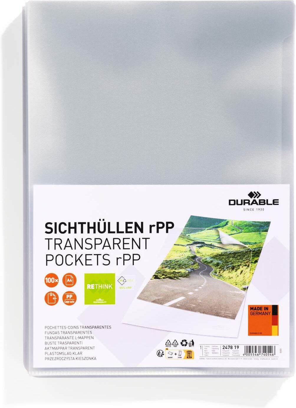 Przezroczysta kieszonka STANDARD A4 rPP Przezroczysta kieszonka z praktycznym wycięciem do łatwiejszego wyciągania kart Koszulka na dokumenty wykonana w co najmniej 95 % z plastiku pochodzącego z recyklingu (odpady przemysłowe, ścinki lub pozostałości produkcyjne) Otwarcie na górze i z prawej strony Grubość: 100 mµ Dla stron formatu A4