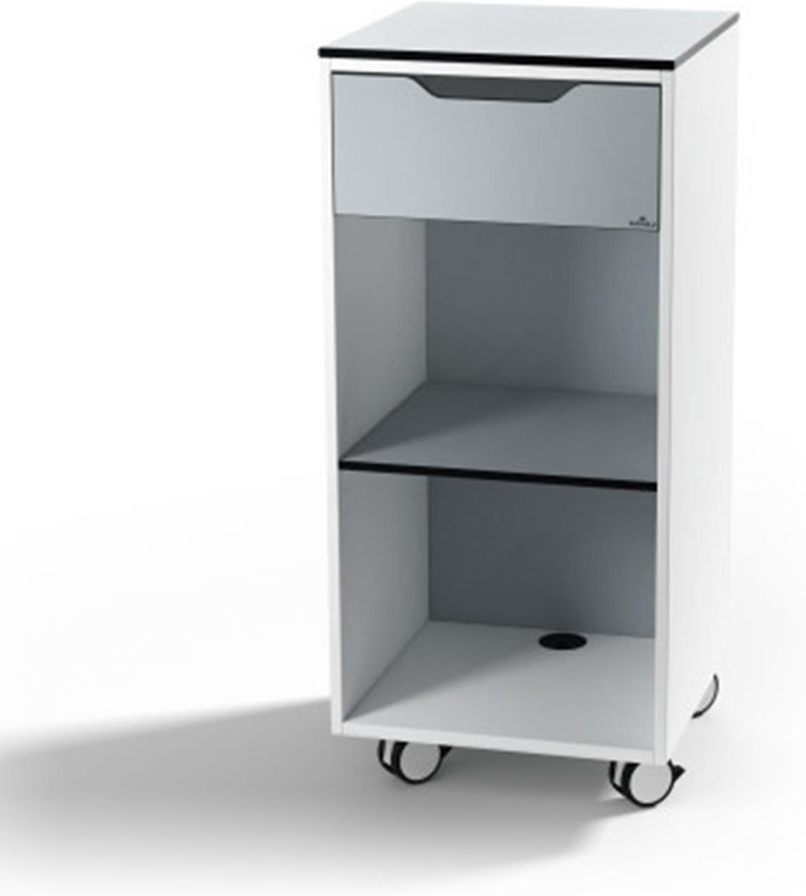 QUADRO Multi Trolley BASIC szafka wielofunkcyjna Mobilne i wszechstronne meble biurowe. Wielofunkcyjne wózki idealnie nadają się do nowoczesnych przestrzeni roboczych i zapewniają miejsce np. dla drukarek, ekspresów do kawy i akcesoriów gastronomicznych. • Wózek biurowy w nowoczesnym designie • Duża wytrzymałość i zwiększona odporność na wilgoć dzięki zastosowaniu wysokiej jakości płyty pilśniowej • Idealny dla biur, sal konferencyjnych, punktów usługowych • Regulowana półka do przechowywania • Delikatnie i cicho zamykana szuflada • Dwa otwory na przewody umożliwiają korzystanie z urządzeń elektrycznych • 4 kółka, 2 z nich z hamulcem • Dołączona instrukcja montażu • Wymiary: 450 x 1000 x 450 mm