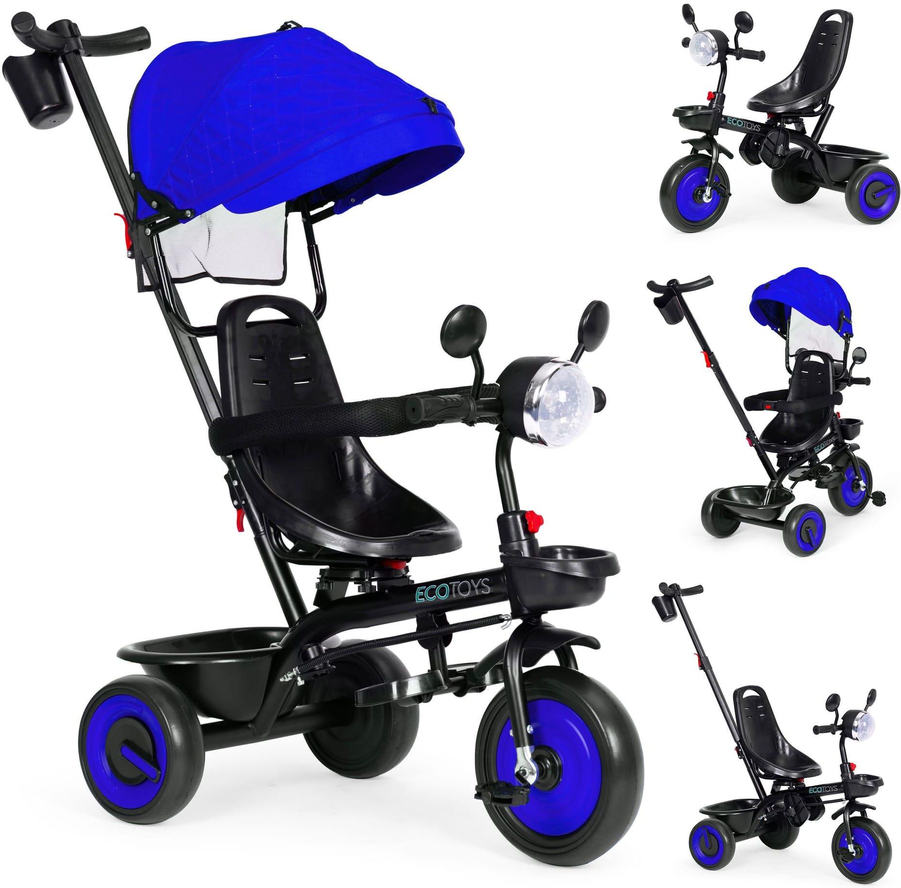 Ecotoys Rowerek Trójkołowy Dla Dzieci Spacerówka 3W1 Obracane Siedzisko Daszek Niebieski Kraków