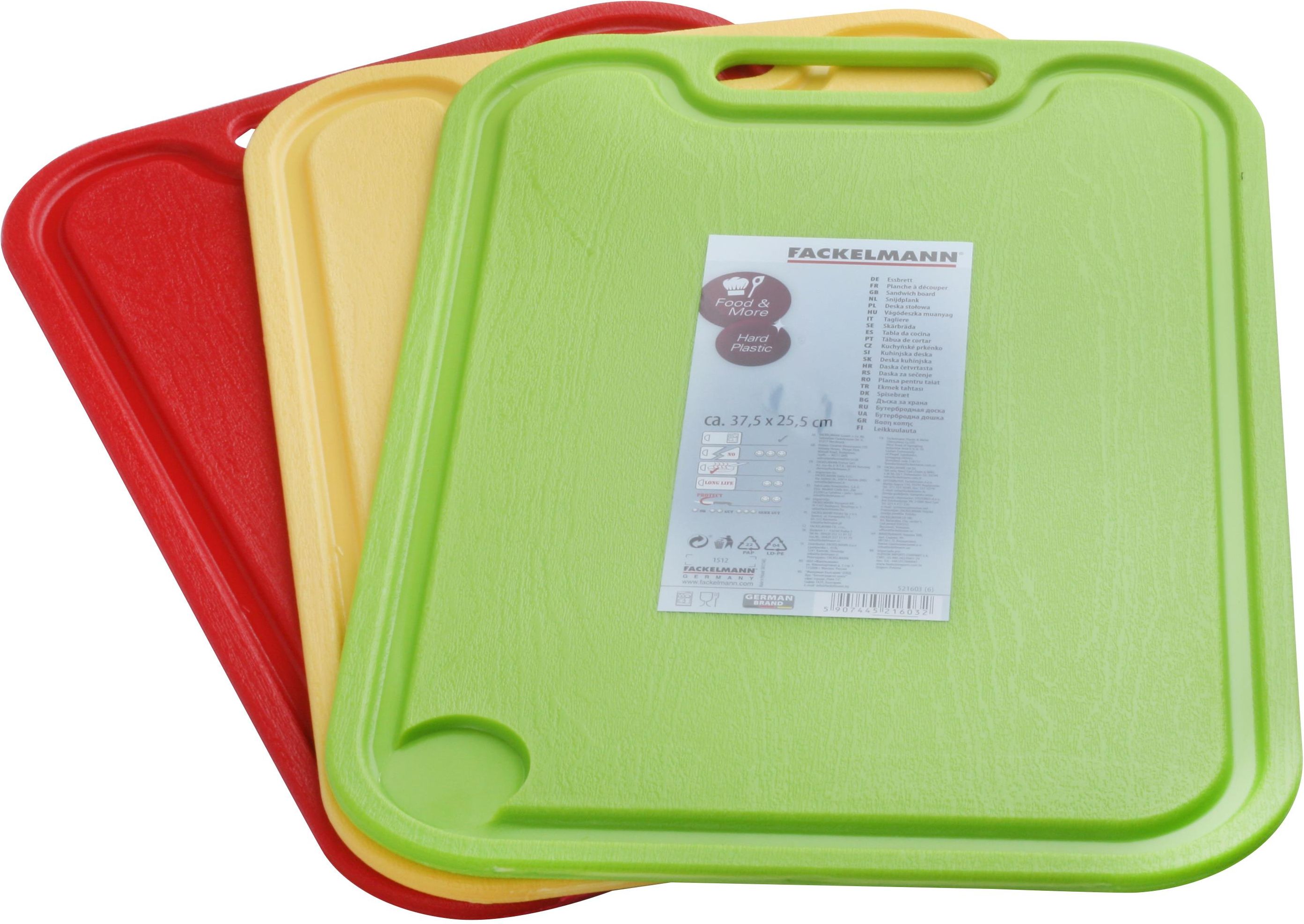 Deska plastikowa 37,5x25,5cm, Fackelmann Deska stołowa niemieckiej firmy Fackelmann została wykonana z wyjątkowo trwałego i bezpiecznego dla jedzenia tworzywa sztucznego, które uchroni ostrze noża przed stępieniem i zapewni jednocześnie pełen komfort krojenia.Bezpieczna dla zmywarek. Obecnie …