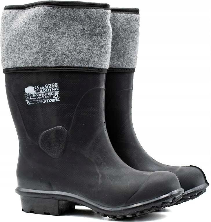 BFBORYNA Buty filcowe. wykonane z gumy. Cholewa wykonana z włókniny zapewniająca ciepło. Stanowią ochronę przed zimnem, przesiąkaniem wody oraz wilgocią. Podeszwa urzeźbiona, antypoślizgowa. Dobrze dopasowują się do nogi dzięki czemu nie zsuwają się podczas pracy i lepiej zabezpieczają przed dostaniem się do wnętrza wody. Przeznaczone dla osób pracujących na budowie, w gospodarstwie rolnym, czy zajmujących się rybołówstwem. Kategoria OB CI SRC. Spełniają wymagania normy EN20347. Marka: FAGUM-STOMIL Produkt polecany dla branż: Rolnictwo Ogrodnictwo Leśnictwo Łowiectwo Rybactwo