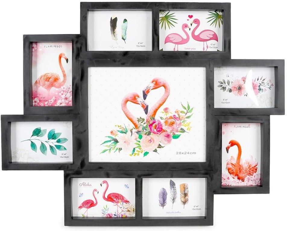 Fandy Gallery Frame w Czarnym Kolorze - Idealny na 9 Zdjęć Oferujemy elegancką ramkę w kolorze czarnym marki Fandy, która pomieści jedno zdjęcie o wymiarach 28 x 24 cm oraz osiem fotografii o formatach 10 x 15 cm. Całkowity rozmiar ramki wynosi 61,5 x 48 cm, co czyni ją idealnym wyborem do dekoracji ściennej. Ożyw swoje wnętrze, prezentując ważne wspomnienia w stylowej oprawie. Ramka przeznaczona jest do zawieszenia na ścianie, co zapewnia wygodę montażu i doskonały efekt wizualny. EAN: 8595083556268