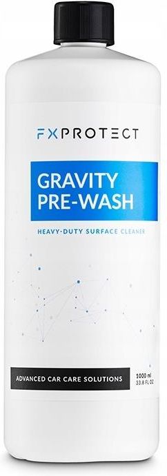 FX Protect Gravity Pre-Wash 1L Alkaliczny preparat do mycia wstępnego To niezwykle silny alkaliczny preparat, który doskonale przygotowuje samochód do mycia właściwego. Jego głównym zadaniem jest zmiękczenie nawet najbardziej uporczywego brudu, dzięki czemu doskonale odspaja się on od czyszczonej powierzchni. Pojemność: 1000 ml Przekłada się to na zdecydowanie mniejszą ilość zanieczyszczeń dostających się na rękawicę, czy już do samego wiadra podczas mycia właściwego, a im mniej brudu, tym mycie jest bezpieczniejsze, łatwiejsze i przyjemniejsze. Gravity Pre-Wash zawiera dużą ilość środków powierzchniowo-czynnych oraz jest silnie skoncentrowany, dzięki czemu można go rozcieńczać w zależności od potrzeby. Produkt może być stosowany na dwa sposoby: w formie oprysku lub piany. Należy pamiętać, że aby powierzchnia była idealne czysta po użyciu Gravity Pre-Wash należy koniecznie przeprowadzić mycie właściwe. Zalecane rozcieńczenie z wodą 1:10-1:80 – oprysk, 1:1-1:10 - pianownica w myjce ciśnieniowej, 1:10-1:30 - pianownica ręczna. Najważniejsze cechy Wyjątkowo skuteczny preparat alkaliczny, zmiękcza i usuwa najbardziej uporczywy brud, zmniejsza ilość zanieczyszczeń dostających się na rękawicę/do wiadra, silnie skoncentrowany, wysoka zawartość środków czyszczących, możliwość stosowania w formie oprysku lub piany, w wysokich rozcieńczeniach bezpieczny dla powłok ochronnych. Przed rozpoczęciem prac Stosować w zacienionym miejscu na chłodnej powierzchni. Przed pierwszym użyciem sprawdzić działanie produktu na mniej widocznej części powierzchni. Niewłaściwe użycie może spowodować trwałe uszkodzenie powierzchni. Sposób użycia Nanieść na powierzchnię za pomocą opryskiwacza lub pianownicy. Odczekać kilka minut. Dokładnie spłukać powierzchnię silnym strumieniem wody.