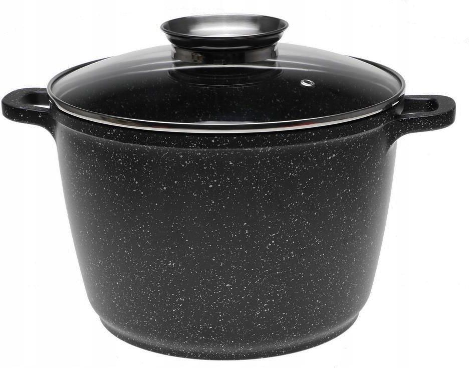 Garnek wysoki z powłoką marmurkową 20 cm Marmurowa powłoka charakteryzuje się bardzo wysoką odpornością na ścieranie i przywieranie. Odporna na wysokie temperatury, nie wchodzi w reakcje z żywnością. Cechy produktu Elementy wykonane są z wysokiej jakości aluminium stopowego Wnętrze garnka pokryte powłoką marmurkową Zestaw umożliwia szybkie podgrzewanie żywności Doskonała wydajność gotowania Oszczędność energii dzięki termicznemu przewodnictwu Praktyczny profil brzegu garnka zapobiega rozlewaniu się płynów podczas gotowania Dno pozbawione jest kantów, co ułatwia nakładanie potraw Nadaje się do kuchenek gazowych, elektrycznych, ceramicznych i indukcyjnych Pokrywa szklana wyposażona w otwór odprowadzający parę wodną Wysokość: 16 cm Średnica garnka: 20 cm Pojemność garnka: 4 l Wysokie i duże naczynie to najlepsze rozwiązanie, kiedy chcemy ugotować zupę lub danie jednogarnkowe dla całej rodziny. Jest wysoki i ma stosunkowo dużą średnicę, dzięki temu pozwala na wygodne wkładanie, mieszanie i przyrządzanie produktów żywnościowych. Wykonany jest z wysokiej jakości aluminium i powlekany granitową powłoką odporną na korozję. Posiada indukcyjne ferromagnetyczne dno, które w szybkim czasie się nagrzewa i równomiernie rozprowadza ciepło. Ponadto za sprawą nowoczesnej powłoki nieprzywierającej nie wchodzi w reakcję z żywnością, zapobiega przypalaniu i przywieraniu jedzenia. Pozwala przygotowywać posiłki z użyciem niewielkiej ilości tłuszczu – doskonałe rozwiązanie dla diabetyków, osób odchudzających się i prowadzących zdrowy tryb życia. Dania w nim przyrządzane są soczyste, aromatyczne i lekkostrawne. Nigdy nie zmieniają swojego naturalnego smaku i zachowują cenne witaminy oraz wartości odżywcze.